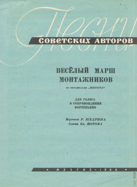 Щедрин Р., Веселый марш монтажников: из кф "Высота". Сл. Вл. Котова: для голоса в сопровождении фортепиано — 1960