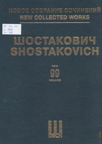 Шостакович Д., Пять романсов на слова из журнала "Крокодил": соч. 121: для баса и фортепиано. Предисловие к Полному собранию моих сочинений и краткое размышление по поводу этого предисловия: : соч. 123: для баса и фортепиано. Четыре стихотворения капитана Лебядкина: : соч. 146: на слова Фёдора Достоевского (из романа "Бесы"): для баса и фортепиано. инструментовки для баса и симф. оркестра Б. Тищенко [соч. 121 (а) и соч. 146 (а)], Л. Десятников [соч. 123 (а)]. общ. ред. В. Екимовский. пояснит. статья Т. Лева. Новое собрание сочинений. Т. 94 — 2014 (Серия IX. Камерные вокальные сочинения и песни)