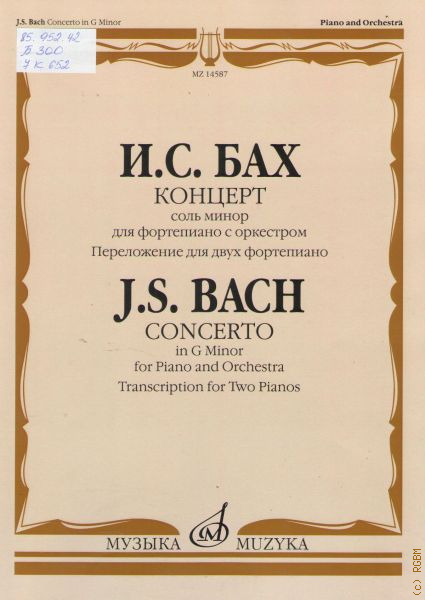 ![Бах И.С., Концерт [— 7]: BWV 1058: Соль минор: для фортепиано с оркестром. Переложение для 2-х фортепиано — 2008](/searchcat/covers/RGUB-BIBL-0000834349-note.jpg) |