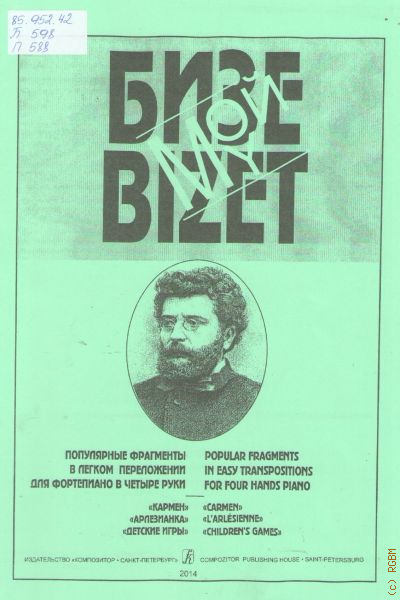Бизе Ж., Мой Бизе: популярные фрагменты в легком переложении для фортепиано в 4 руки: "Кармен", "Арлезианка", "Детские игры". перелож. Ж. Л. Металлиди — 2014