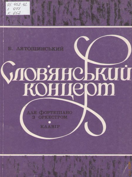 Лятошинский Б.Н., Славянский концерт: Сочинение 54. для фортепиано с оркестром (1953 г.). Переложение для 2-х фортепиано автора — 1982