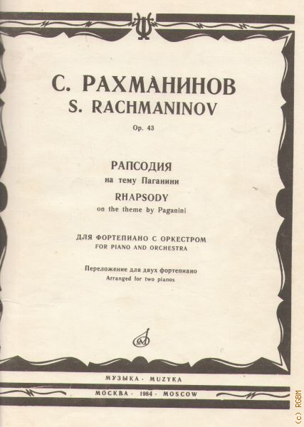 Рахманинов С.В., Рапсодия на тему Паганини: Соч. 43: для фортепиано с оркестром. Переложение для 2-х фортепиано — 1984
