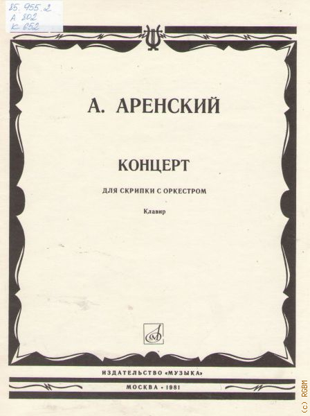 Аренский А., Концерт: Соч. 54 для скрипки с оркестром. Клавир — 1981