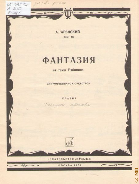 ![Аренский А. С., Фантазия на темы И. Рябинина. Соч. 48: для фортепиано с оркестром. [Переложение для 2-х фортепиано автора] — 1979](/searchcat/covers/RGUB-BIBL-0000783901-note.jpg) |