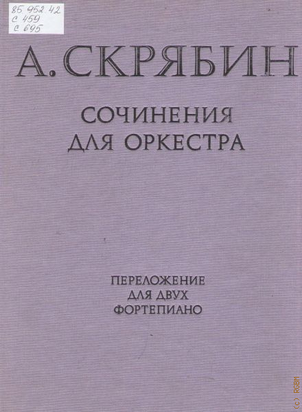 Содержание: Концерт: Соч. 20: для фортепиано с оркестром (1897 г.). для 2-х фортепиано / Перелож. и ред. Ю. Оленева. Поэма экстаза: Соч. 54 (1907 г.): для 2-х фортепиано / Перелож. Л. Конюса. Прометей: Соч. 60 (1910 г.): для 2-х фортепиано / перелож. С. Павчинского
