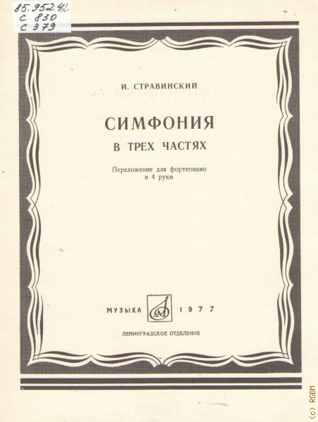 Стравинский И., Симфония в трех частях. Переложение для фортепиано в 4 руки — 1977