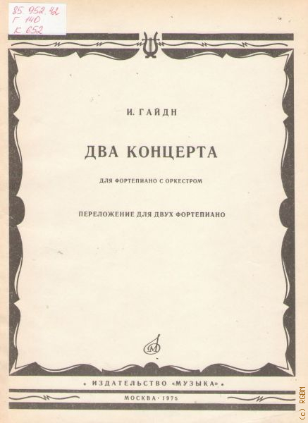 Содержание: Концерт Соль мажор /. Ред. Л. Ройзмана, Каденция к 1 и 2. ч.: З. Сливиньский. Концерт Ре мажор / перелож. и ред. А. Гольденвейзер, Каденция к 1 и 2 ч. И. Гайдн, Каденция к 1 и 2 ч. Д. Кабалевский.