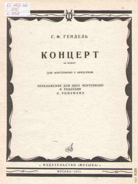 Гендель Г. Ф., Концерт: Фа мажор для фортепиано с оркестром. Переложение для 2-х фортепиано — 1975