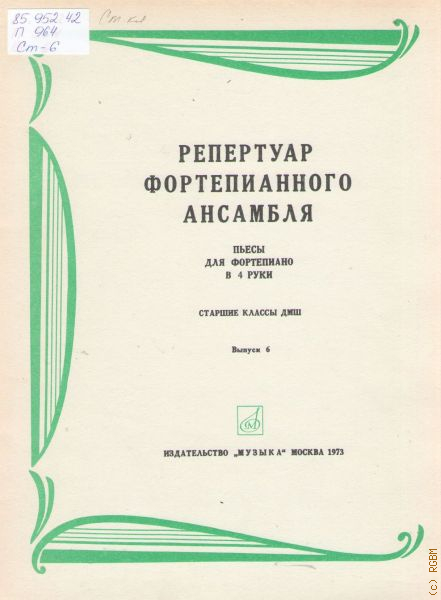 Пьесы для фортепиано в 4 руки. Старшие классы ДМШ. Вып. 6 — 1973 (Репертуар фортепианного ансамбля)