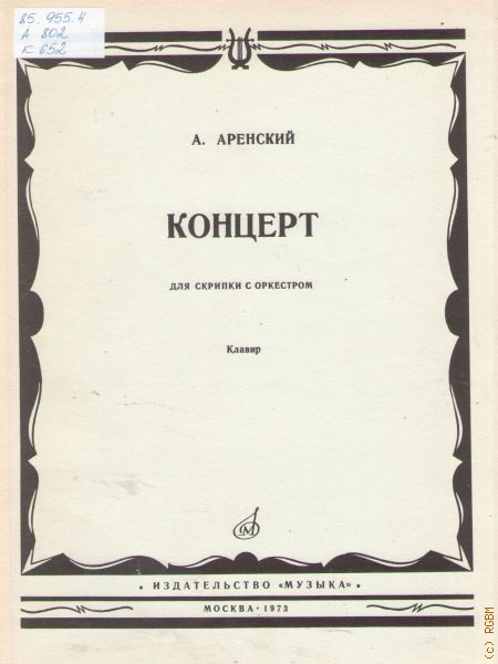 Аренский А., Концерт: Соч. 54 для скрипки с оркестром. Клавир — 1973