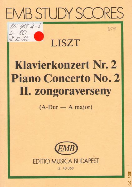 Liszt F., Klavierkonzert N 2: R.456 (A Dur) herausgegeben von Kozreadja Sulyok Imre — Á. ã.