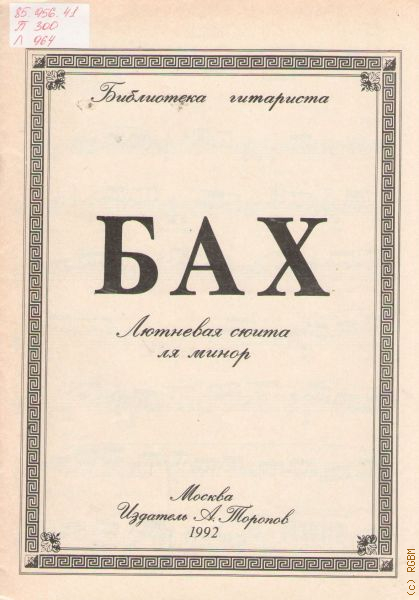 Бах И. С., Лютневая сюита: BWV 995: Ля минор — 1992 (Библиотека гитариста)