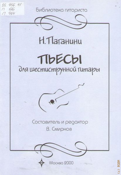 Паганини Н., Пьесы для шестиструнной гитары. Составитель и редактор В. Смирнов — 2000 (Библиотека гитариста)