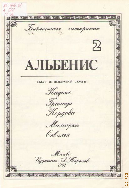 Альбенис И., Пьесы из испанской сюиты. Вып. 2 — 1992 (Библиотека гитариста)