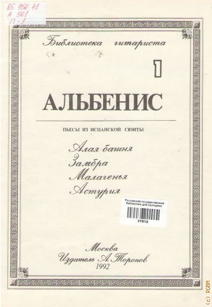 Альбенис И., Пьесы из испанской сюиты. Вып. 1 — 1992 (Библиотека гитариста)