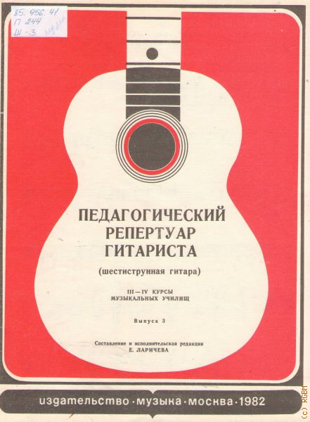 Педагогический репертуар гитариста. Шестиструнная гитара. 3 - 4 курсы музыкальных училищ. Вып. 3. Сост. и исполн. ред. Е. Ларичев — 1982