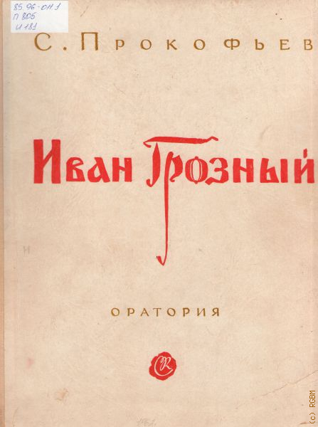 Прокофьев С. С., Иван Грозный: Оратория для хора, чтеца, солистов и большого симфонического оркестра. Текст С. Эйзенштейна. Текст песен В. Луговского. Музыкальная редакция и переложение для пения с фортепиано А. Стасевича. Английский текст монологов и песен Г. Маршалла. Предисловие Т. Корганова — 1962